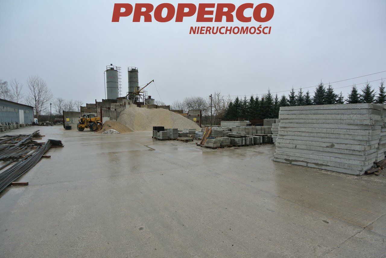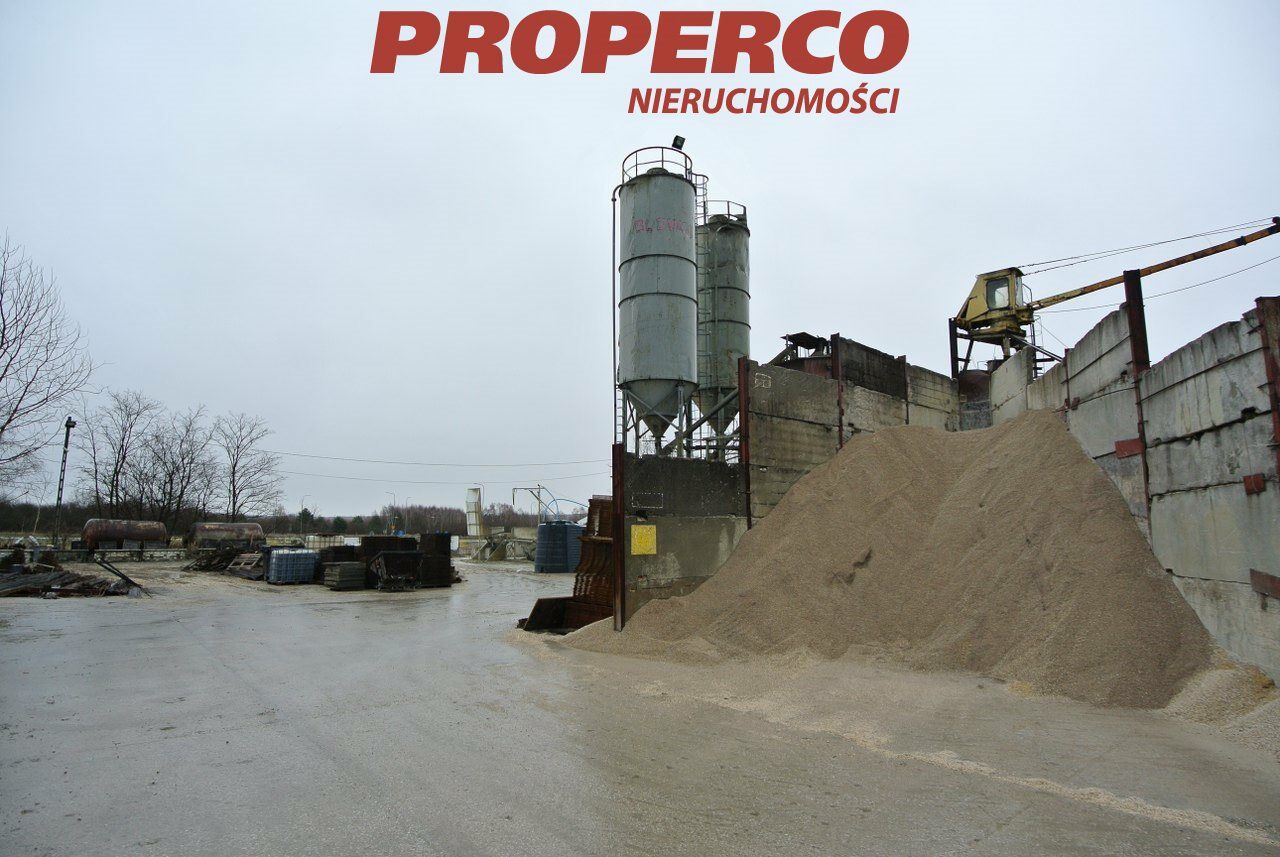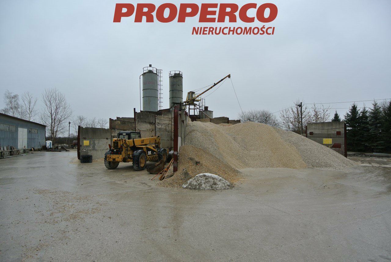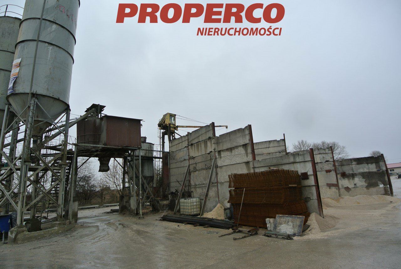 For sale, a plot of land with an area of approximately 5000m2 featuring a functioning concrete mixing station , located in Pińczów. The plot is flat, fenced, and landscaped, with access via a hardened road. On the plot, there is a operational concrete mixing station with a concrete recycling system and a weighbridge for up to 60 tons.