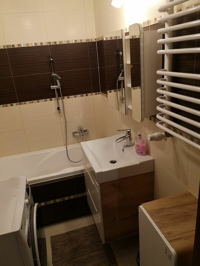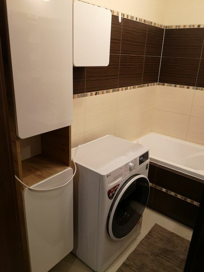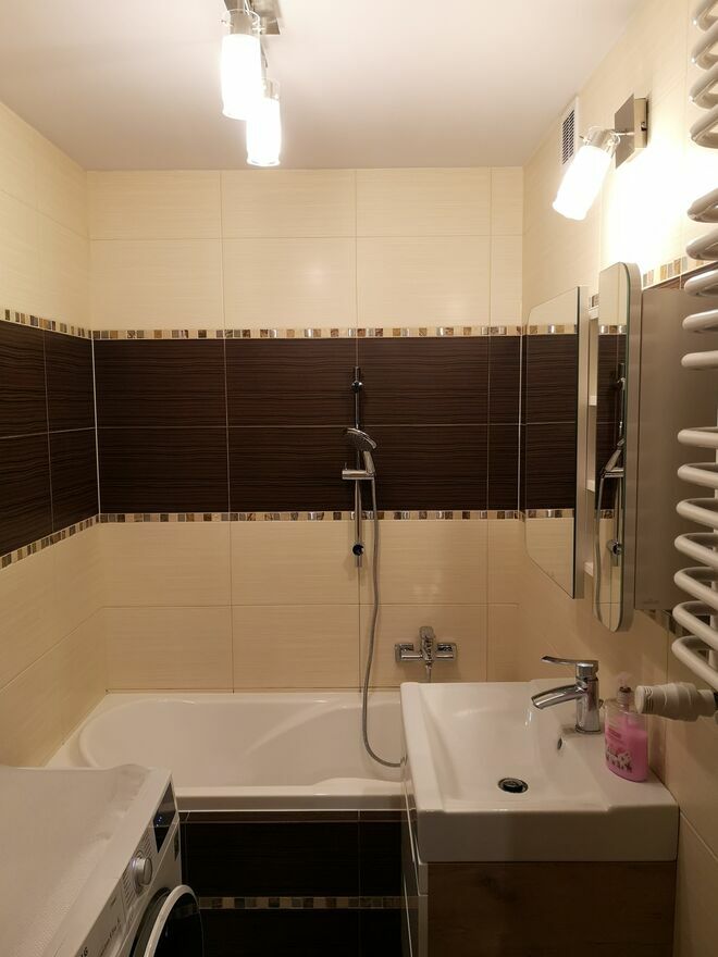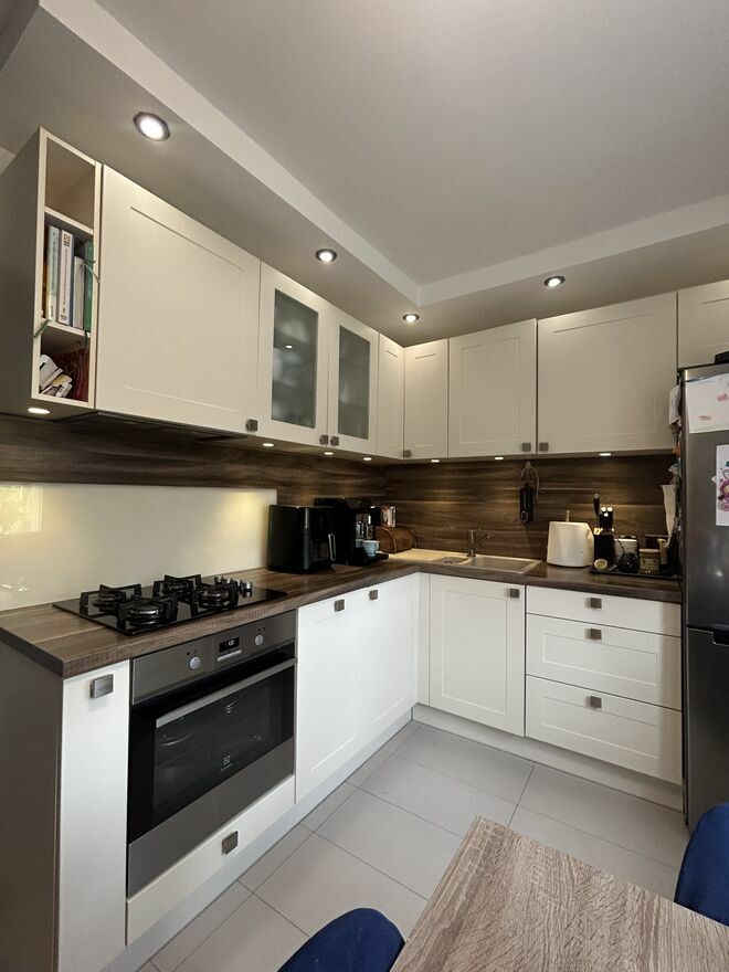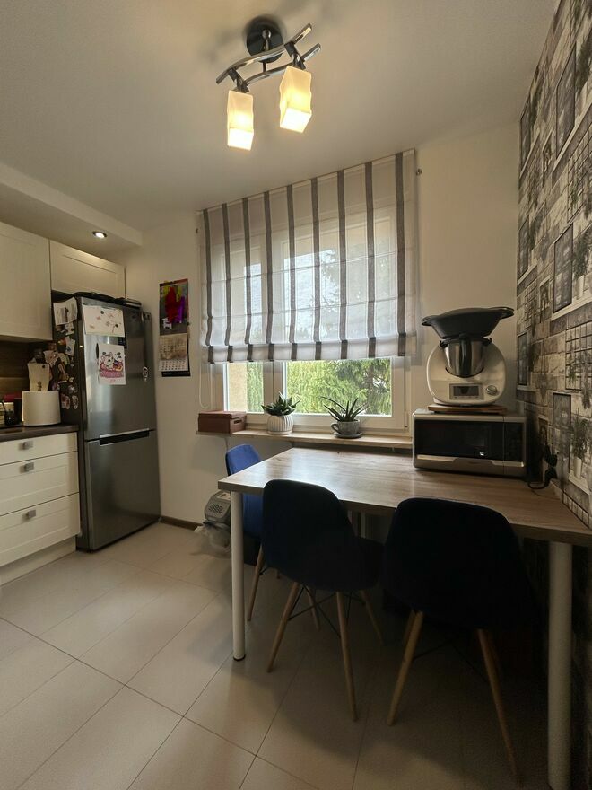 - W pełni zabudowana kuchnia wraz ze sprzętem (oprócz lodówki i drobnego sprzętu AGD). Ostatnio zakupiona została zmywarka pod zabudowę marki Bosh (lipiec).