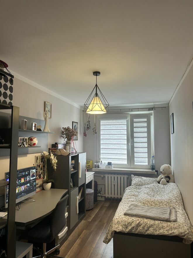 Do mieszkania przynależy piwnica. Pomieszczenia przestronne, słoneczne, ciche, ładny widok z okna.